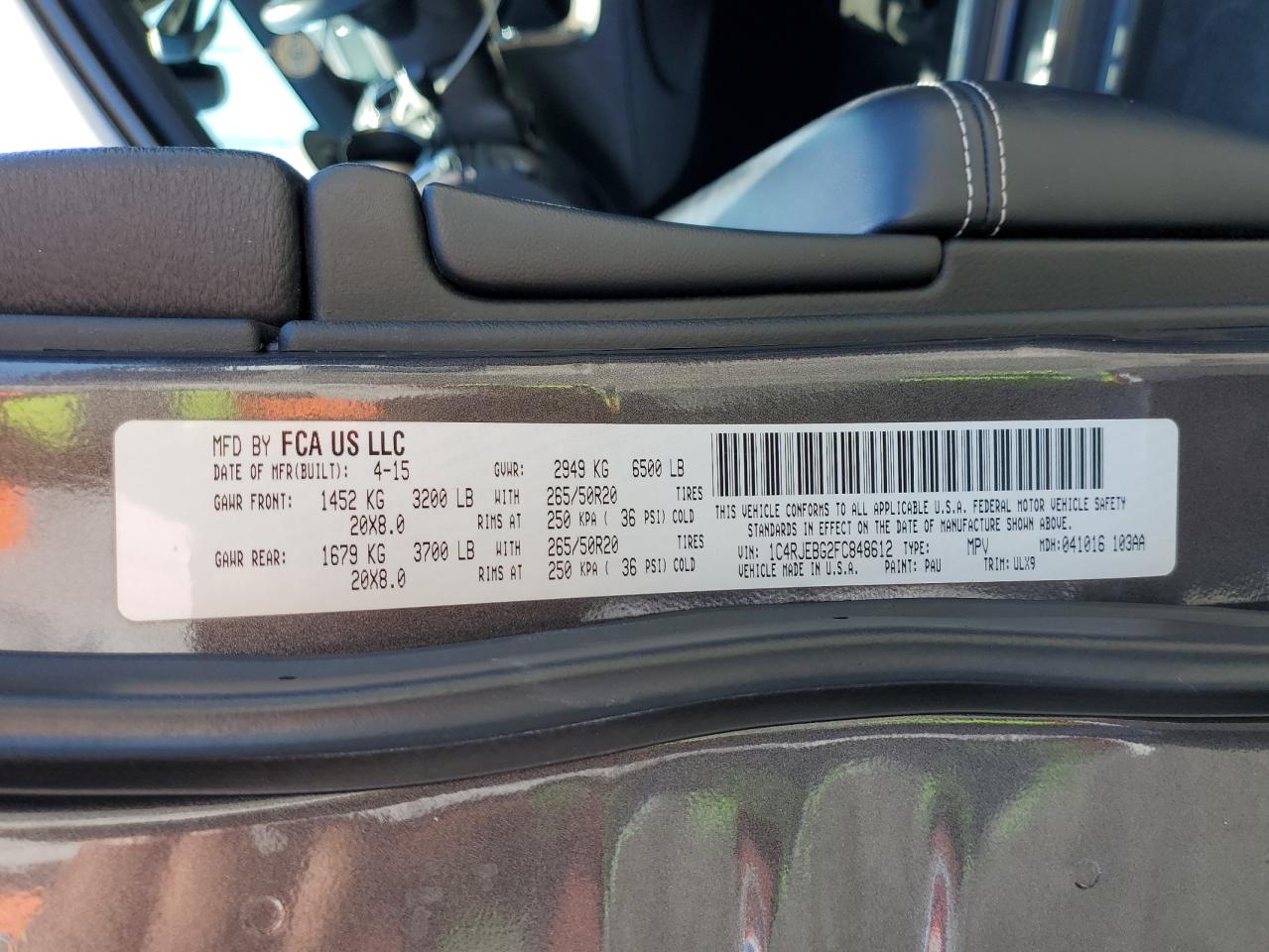 Колір СірийЦиліндри 6Привід Задній привідVIN 1C4RJEBG2FC848612Стан Заводиться та їде (перевірено)Ушкодження Передня або задня