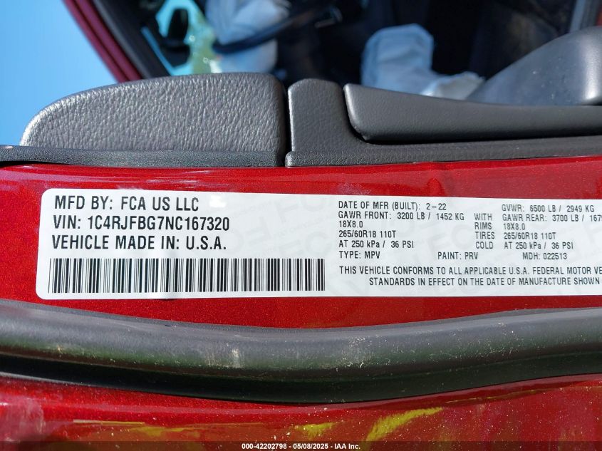 JEEP GRAND CHEROKEE 3.6 2022 р.в., Повний привід (1C4RJFBG7NC167320) з США