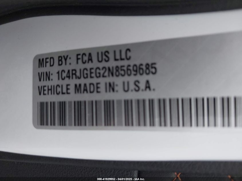 Колір БілийЦиліндри 6VIN 1C4RJGEG2N8569685Стан Заводиться та їде (перевірено)Ушкодження Передня або задня