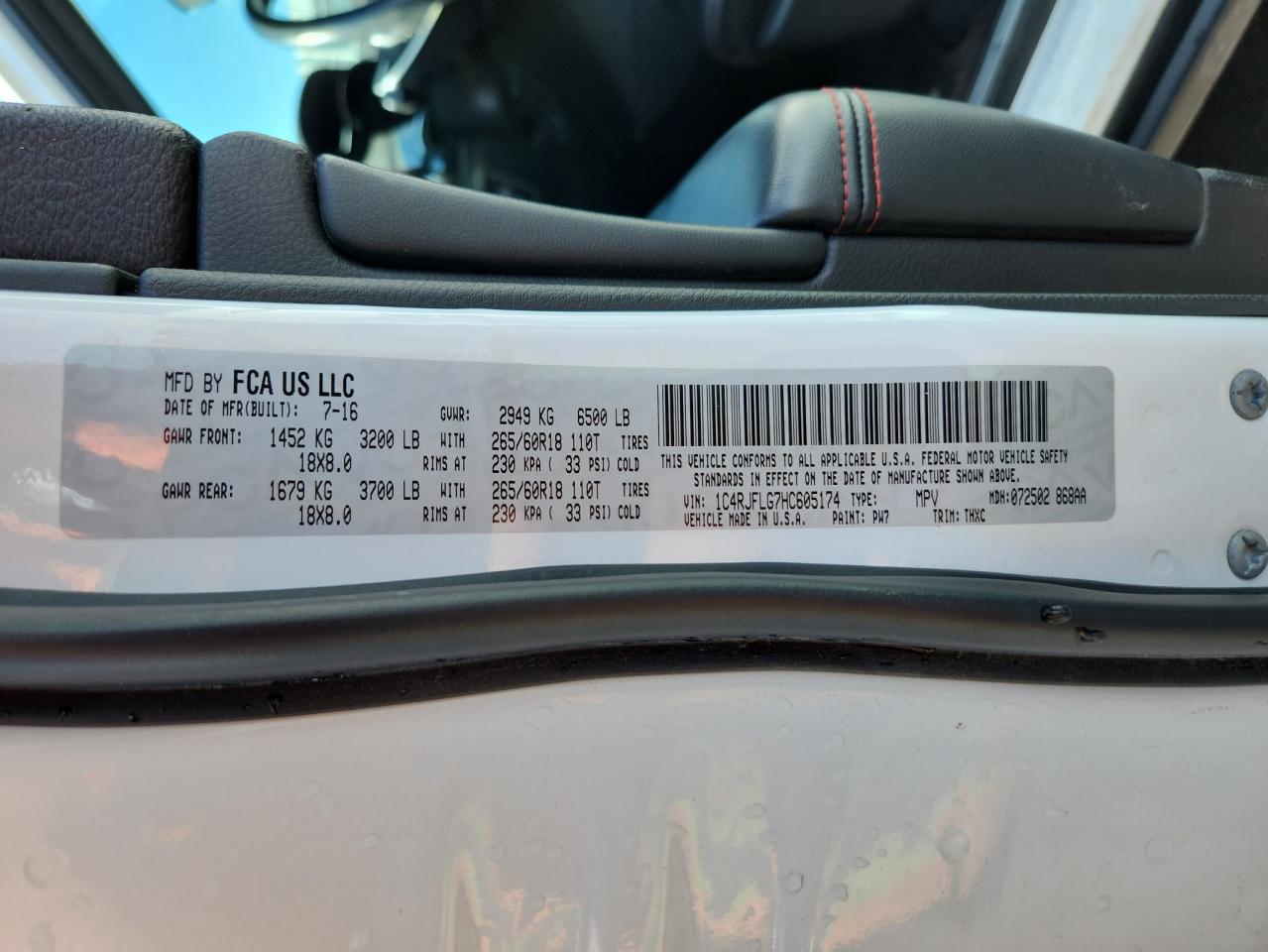 Колір БілийЦиліндри 6Привід 4x4 з заднім приводомVIN 1C4RJFLG7HC605174Стан Заводиться та їде (перевірено)Ушкодження Передня або задня