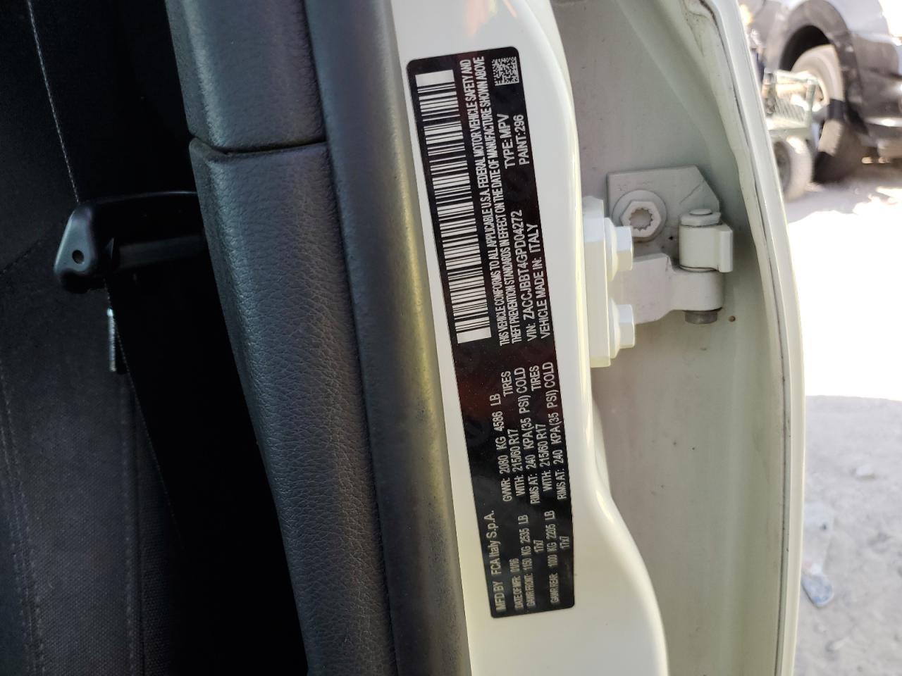 Колір БілийЦиліндри 4Привід 4x4 з переднім приводомVIN ZACCJBBT4GPD04272Стан Заводиться та їде (перевірено)Ушкодження ЗадняДата аукціону 2025-11-03
