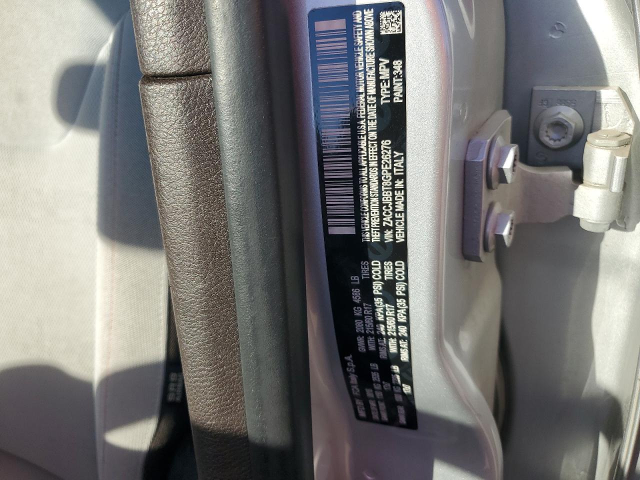 Колір СрібнийЦиліндри 4Привід 4x4 з переднім приводомVIN ZACCJBBT8GPE26276Стан Заводиться та їде (перевірено)Ушкодження Передня або задняДата аукціону 2025-11-04