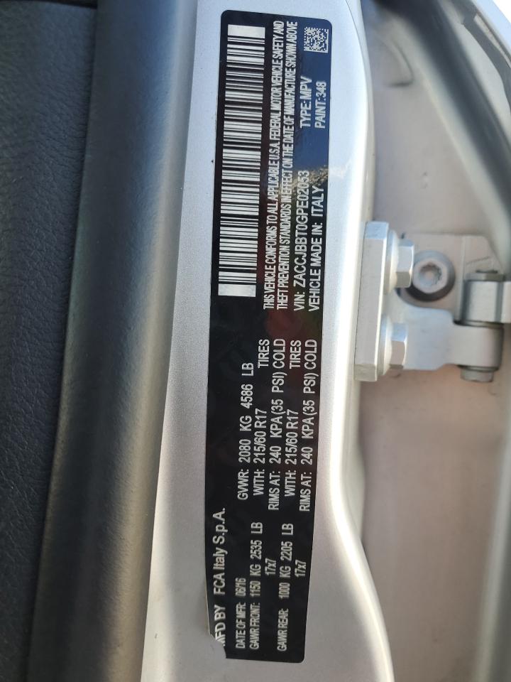 Колір СрібнийЦиліндри 4Привід 4x4 з переднім приводомVIN ZACCJBBT0GPE02053Стан Заводиться та їде (перевірено)Ушкодження Передня або задня