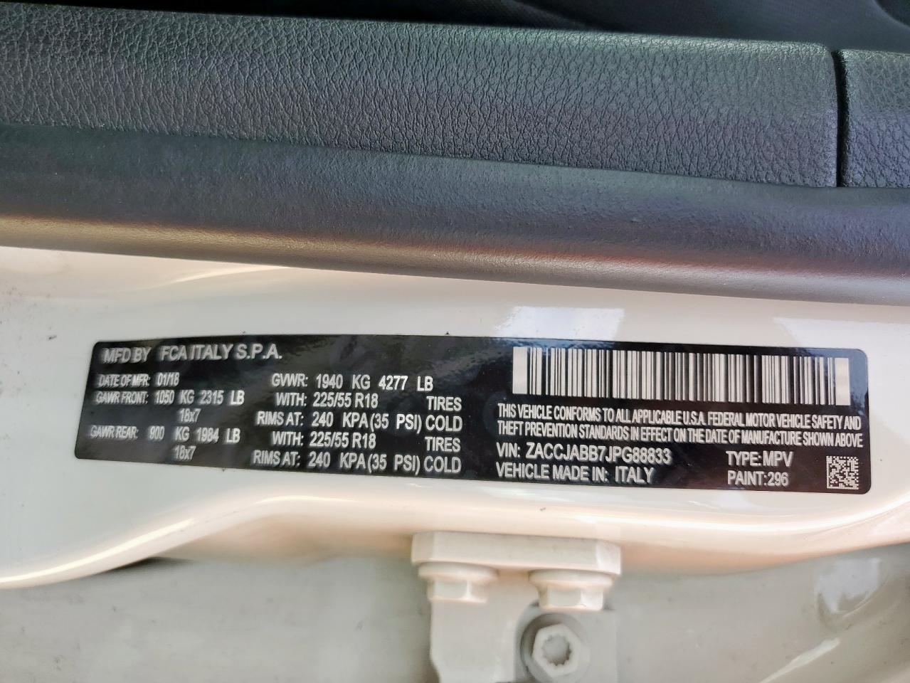 Колір БілийЦиліндри 4VIN ZACCJABB7JPG88833Стан Заводиться та їде (перевірено)Ушкодження Передня або задня