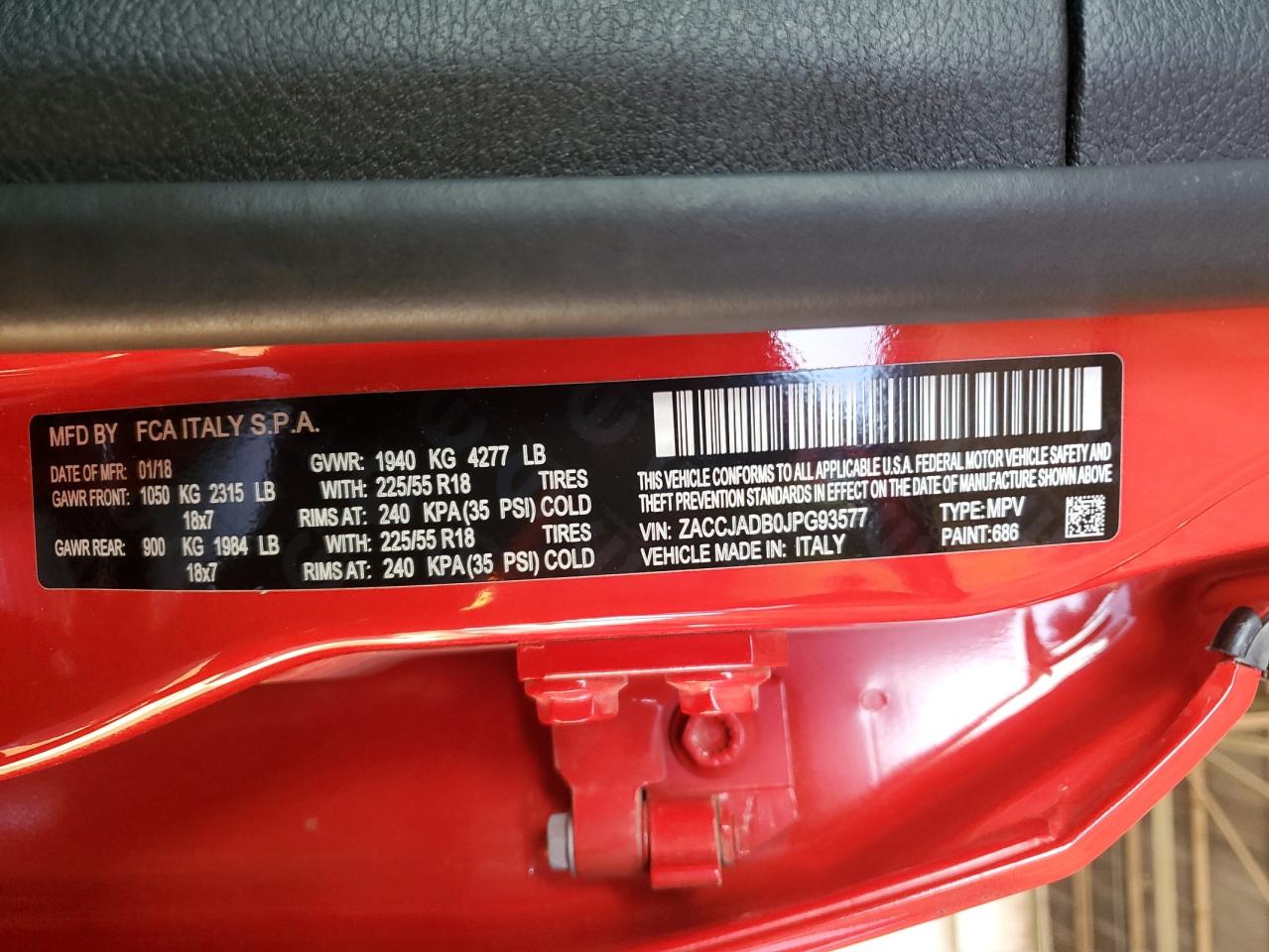 Колір ЧервонийЦиліндри 4VIN ZACCJADB0JPG93577Стан НевідомоУшкодження Передня або задняДата аукціону 2025-11-03
