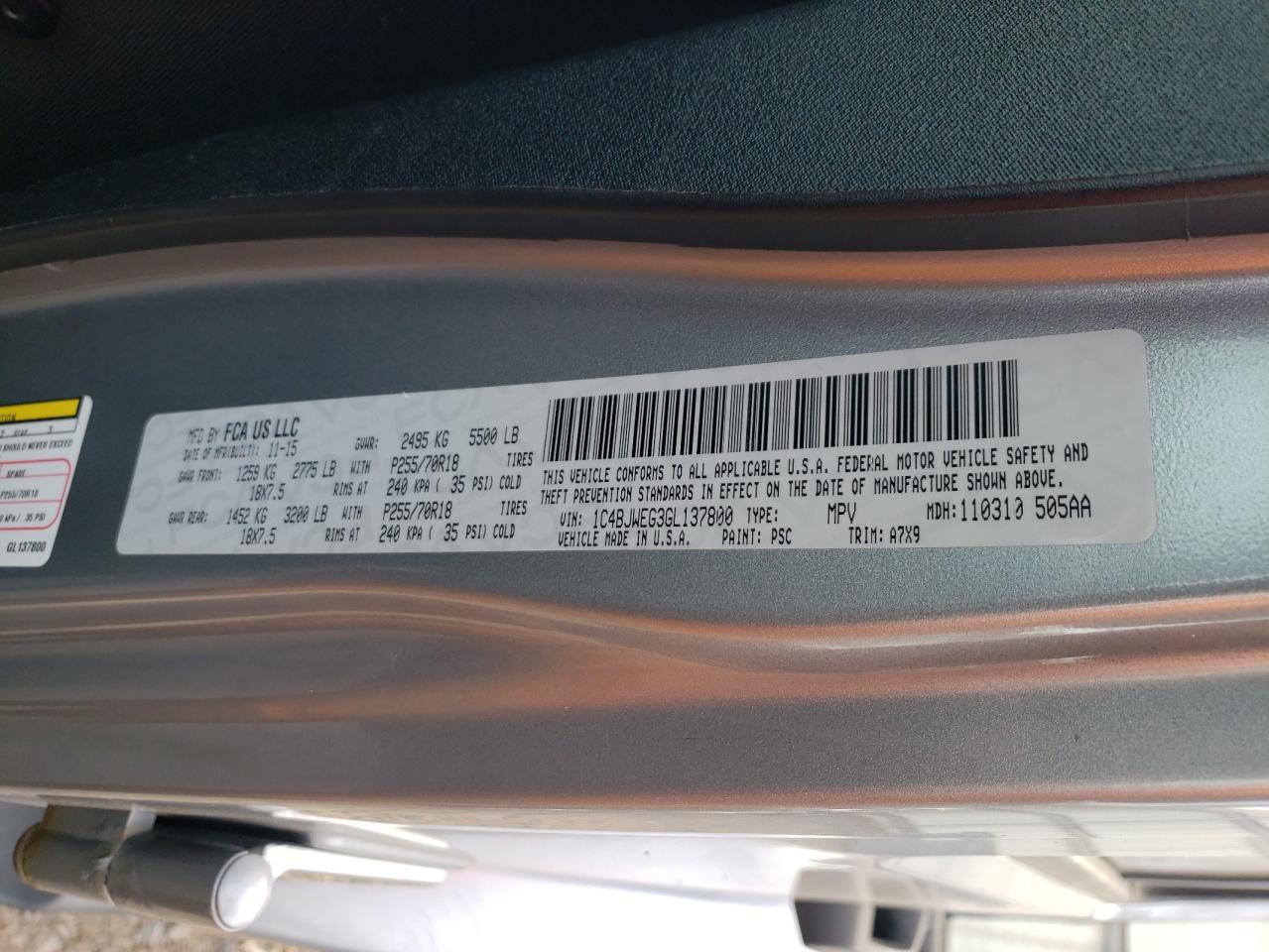 Колір СрібнийЦиліндри 6Привід 4x4 з заднім приводомVIN 1C4BJWEG3GL137800Стан Заводиться та їде (перевірено)Ушкодження Передня або задня