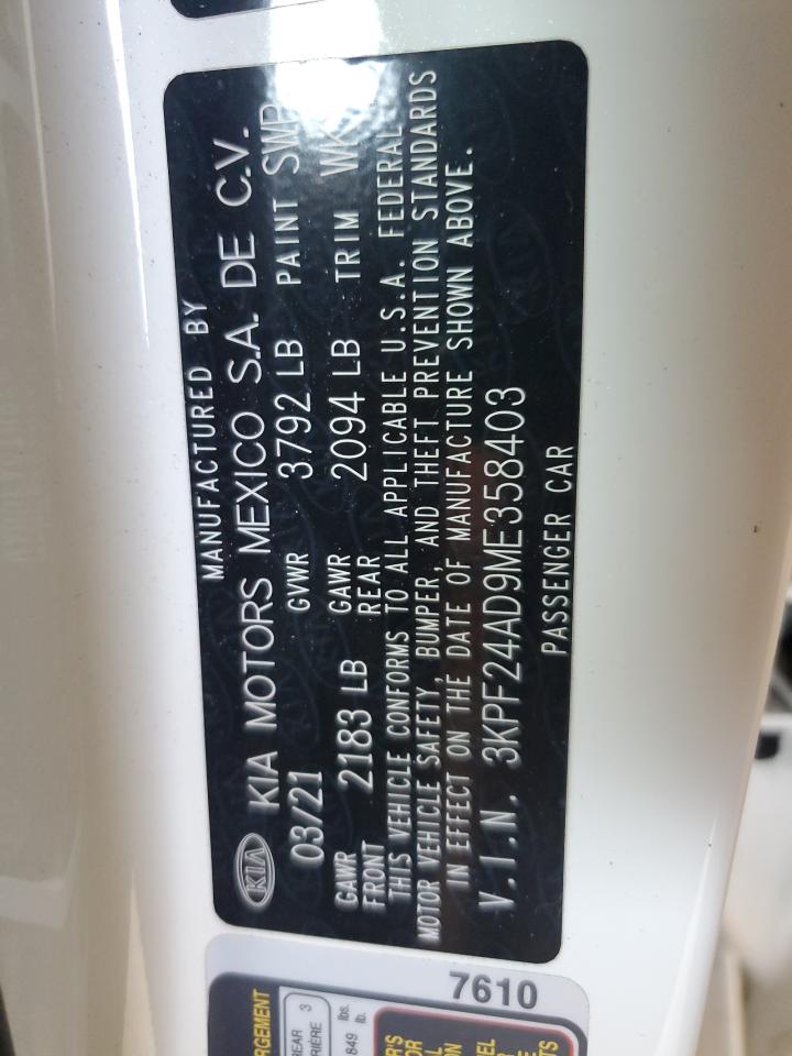 KIA FORTE 2.0 2021 р.в., (3KPF24AD9ME358403) з США