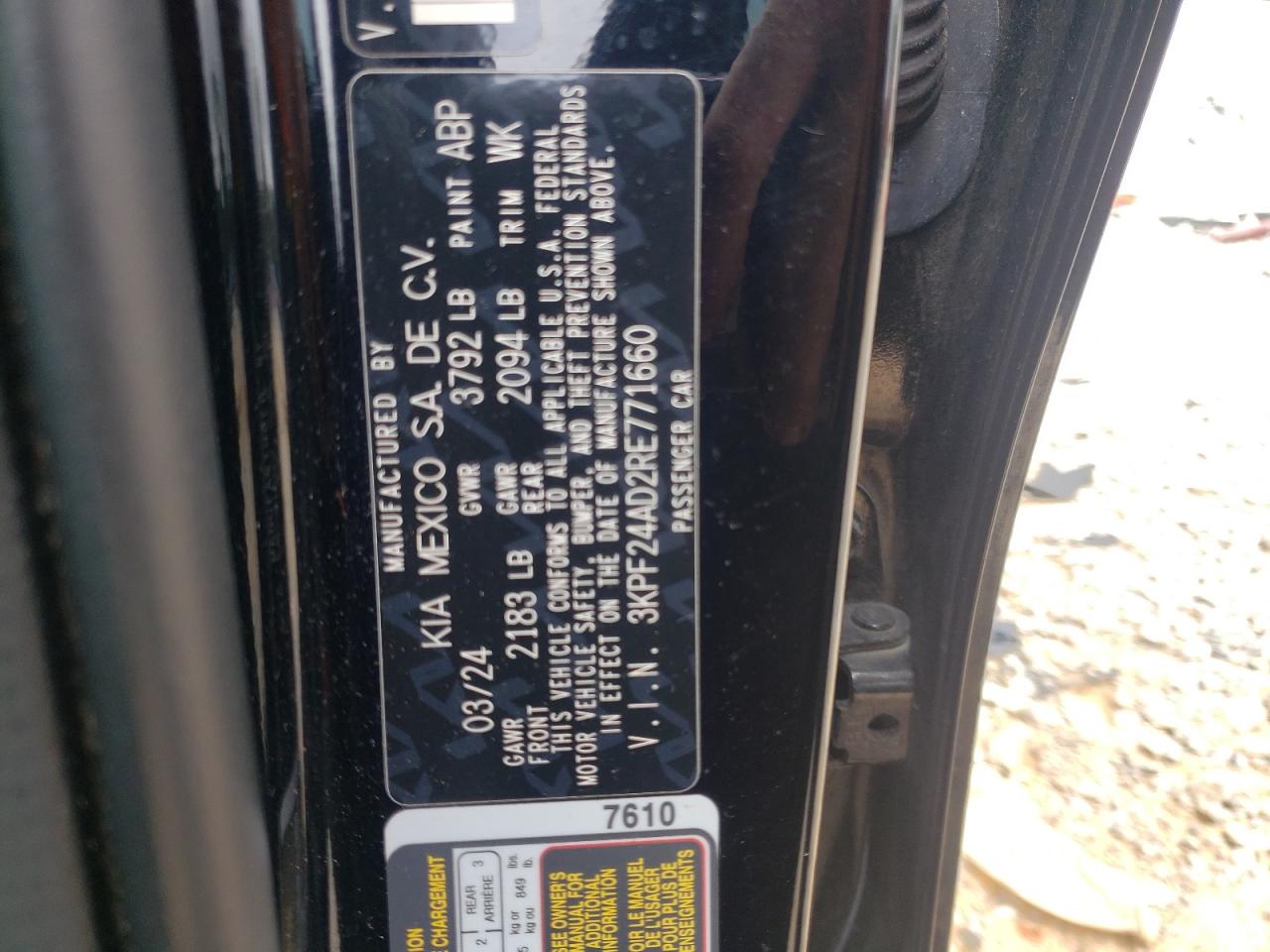 KIA FORTE 2.0 2024 р.в., (3KPF24AD2RE771660) з США