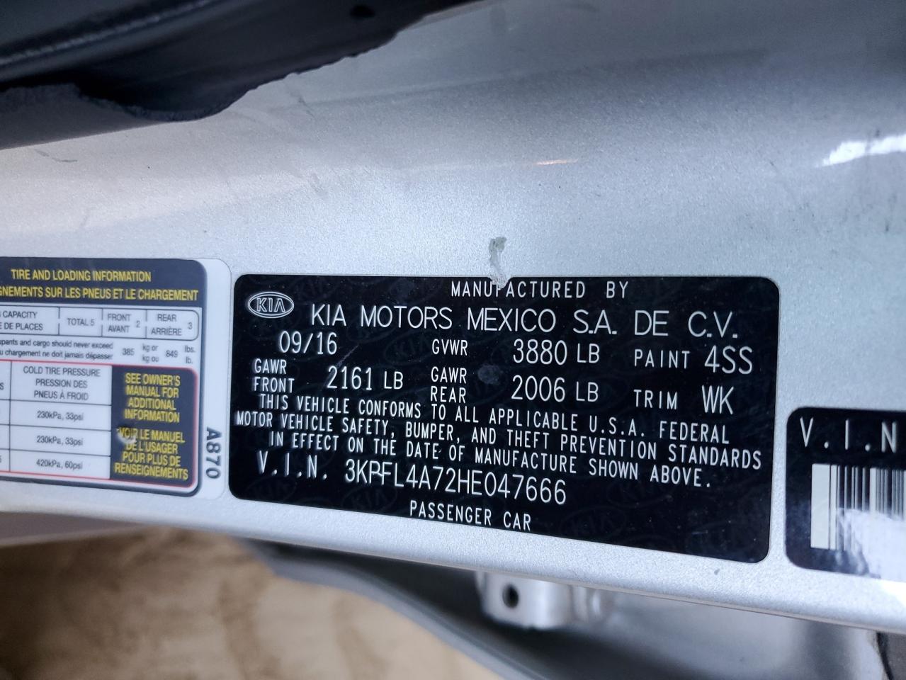 Колір СрібнийЦиліндри 4VIN 3KPFL4A72HE047666Стан Заводиться та їде (перевірено)Ушкодження Передня або задняДата аукціону 2025-11-03