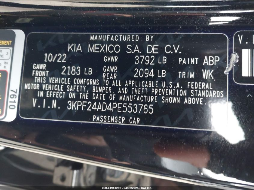 KIA FORTE 2.0 2023 р.в., Передній привід (3KPF24AD4PE553765) з США