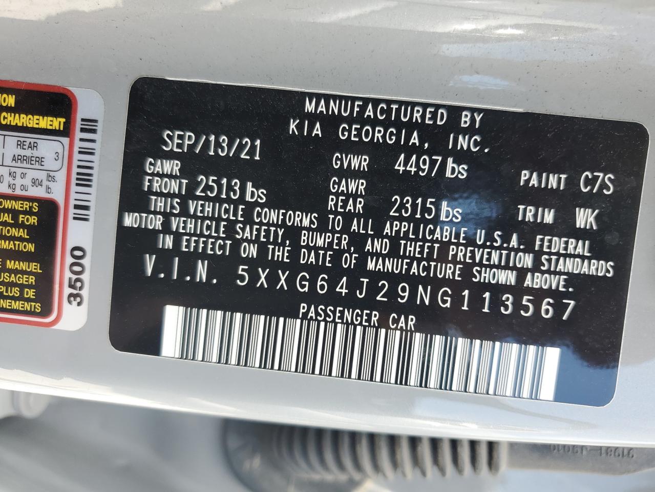 KIA K5 1.6 2022 р.в., (5XXG64J29NG113567) з США