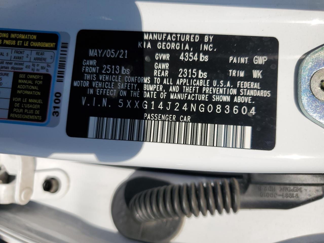 Колір БілийЦиліндри 4VIN 5XXG14J24NG083604Стан Заводиться та їде (перевірено)Ушкодження Передня або задняДата аукціону 2025-11-05