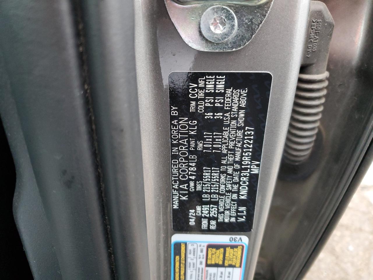 Колір СірийЦиліндри 0VIN KNDCR3L19R5122137Стан Заводиться та їде (перевірено)Ушкодження ЗадняДата аукціону 2025-11-03