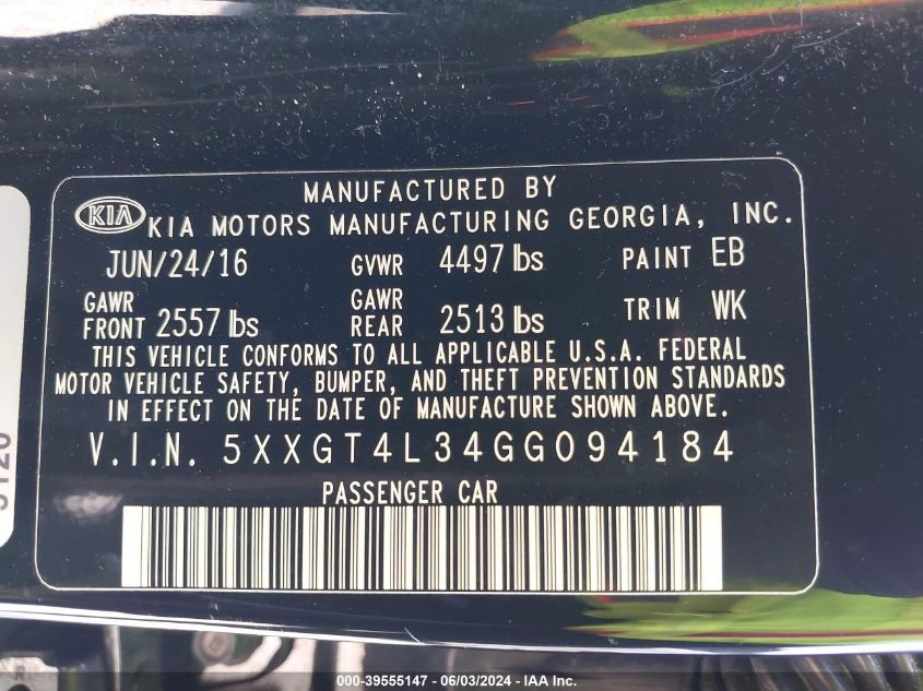 KIA OPTIMA 2.4 2016 р.в., Передній привід (5XXGT4L34GG094184) з США