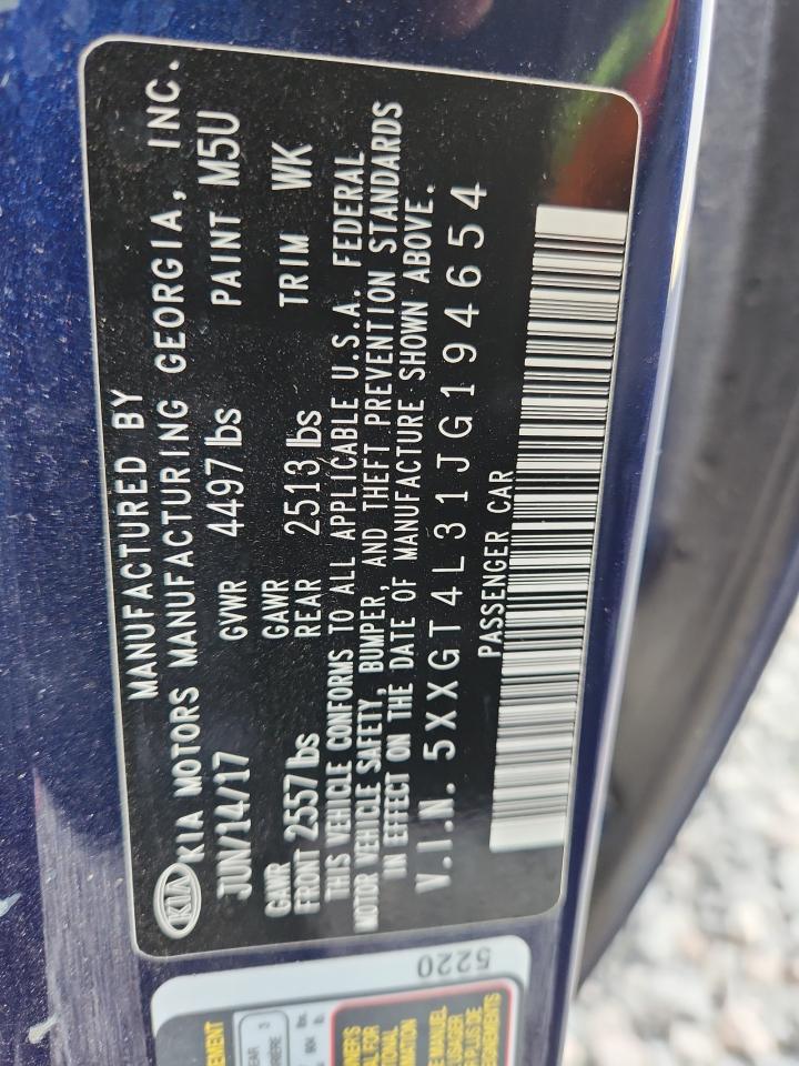 Колір СинійЦиліндри 4VIN 5XXGT4L31JG194654Стан Заводиться та їде (перевірено)Ушкодження Передня або задня