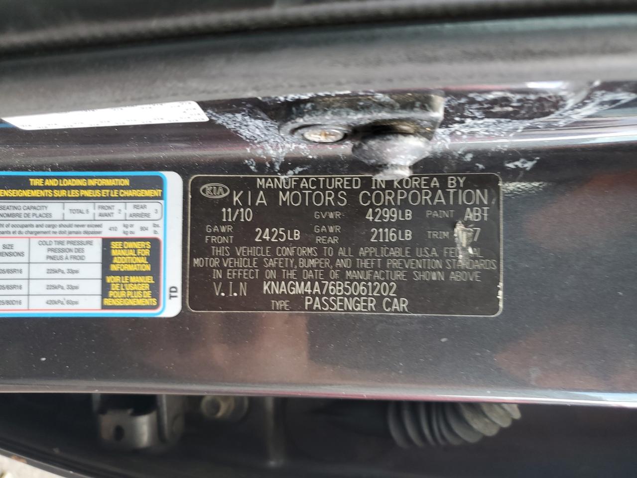 Колір СірийЦиліндри 4VIN KNAGM4A76B5061202Стан НевідомоУшкодження Передня або задня