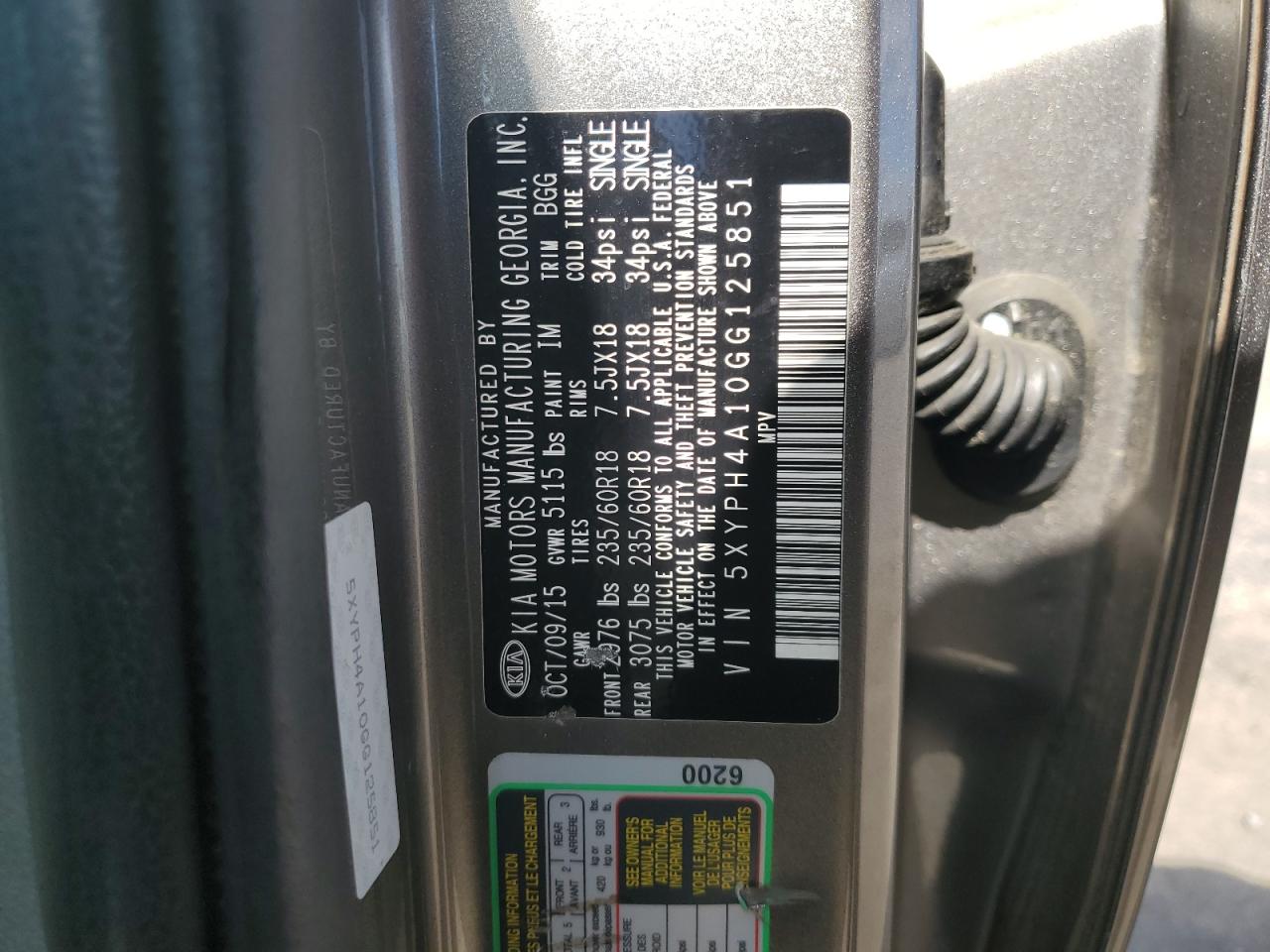 2016 KIA SORENTO 2.4L LX