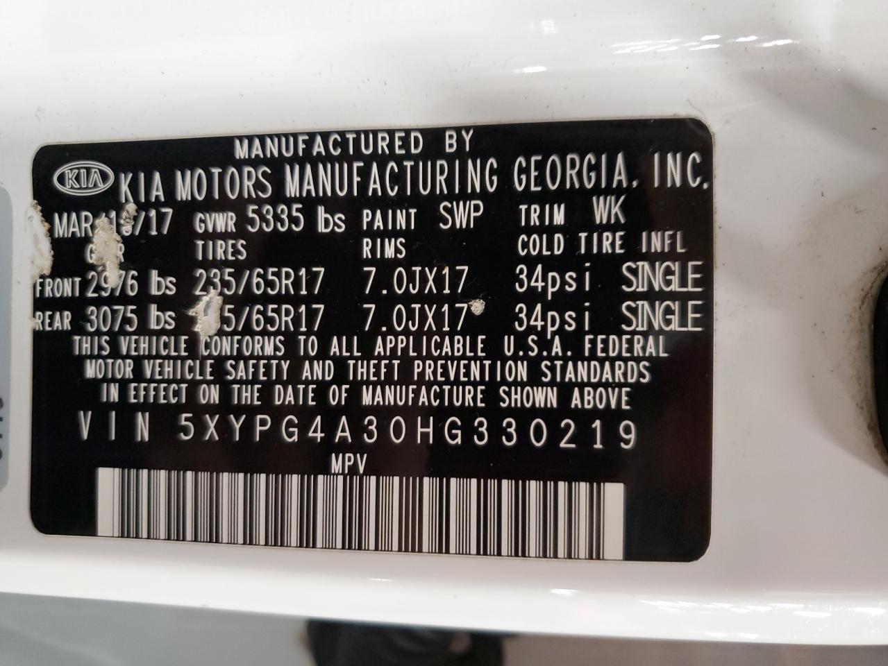 2017 KIA SORENTO 3.3L LX
