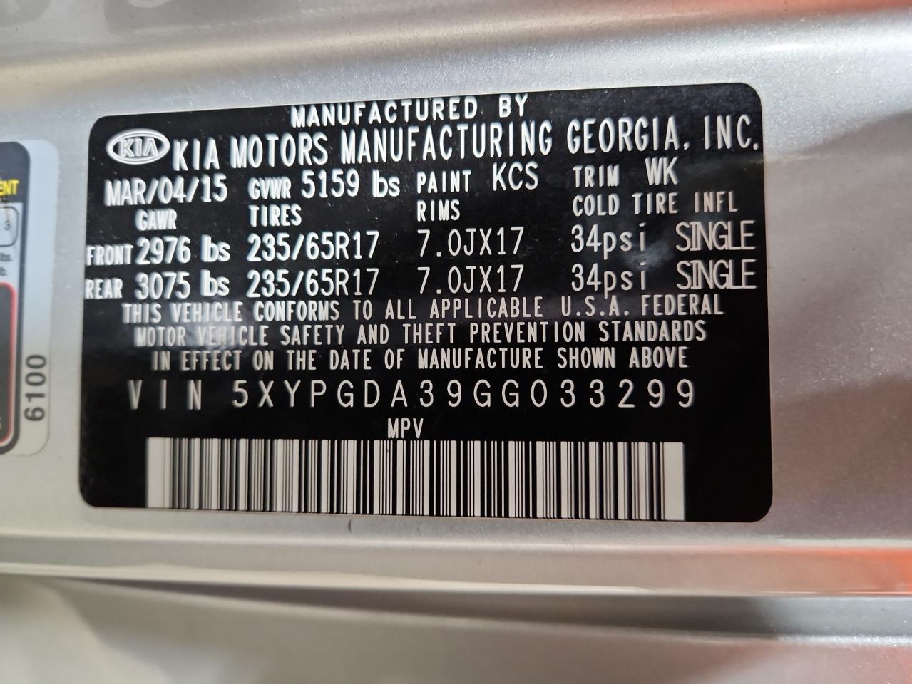 2016 KIA SORENTO 3.3L EX