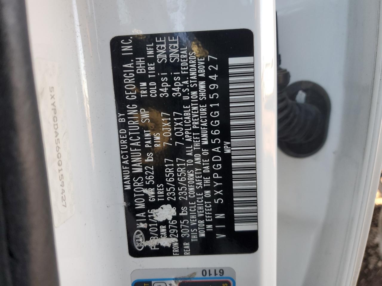 Колір БілийЦиліндри 6Привід Повний привідVIN 5XYPGDA56GG159427Стан Заводиться та їде (перевірено)Ушкодження Передня або задня