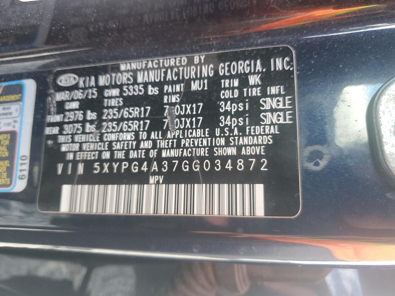 Колір СинійЦиліндри 4VIN 5XYPG4A37GG034872Стан НевідомоУшкодження Передня або задня