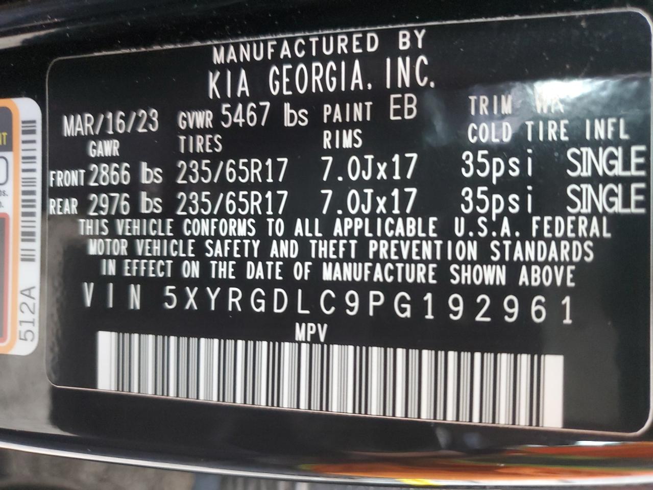 KIA SORENTO 2.5 2023 р.в., Повний привід (5XYRGDLC9PG192961) з США