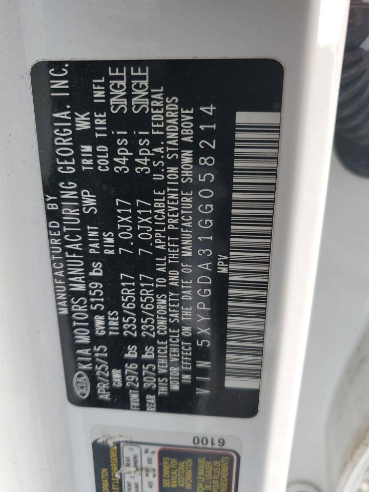 Колір БілийЦиліндри 4Привід Повний привідVIN 5XYPGDA31GG058214Стан Заводиться та їде (перевірено)Ушкодження Передня або задня