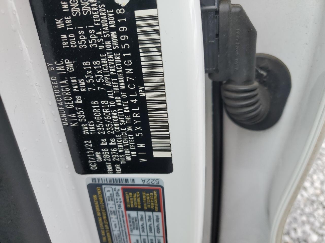 Колір БілийЦиліндри 4VIN 5XYRL4LC7NG159918Стан НевідомоУшкодження Передня або задня