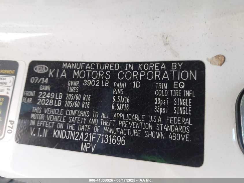 KIA SOUL 1.6 2015 р.в., Передній привід (KNDJN2A21F7131696) з США