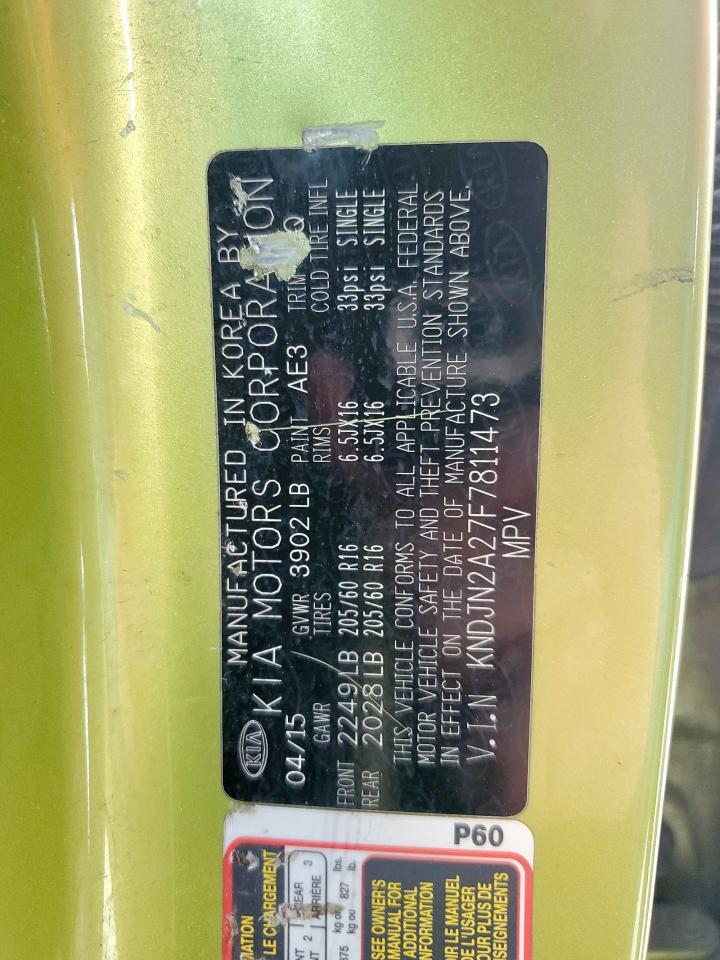 Колір ЗеленийЦиліндри 4VIN KNDJN2A27F7811473Стан Заводиться та їде (перевірено)Ушкодження Передня або задня