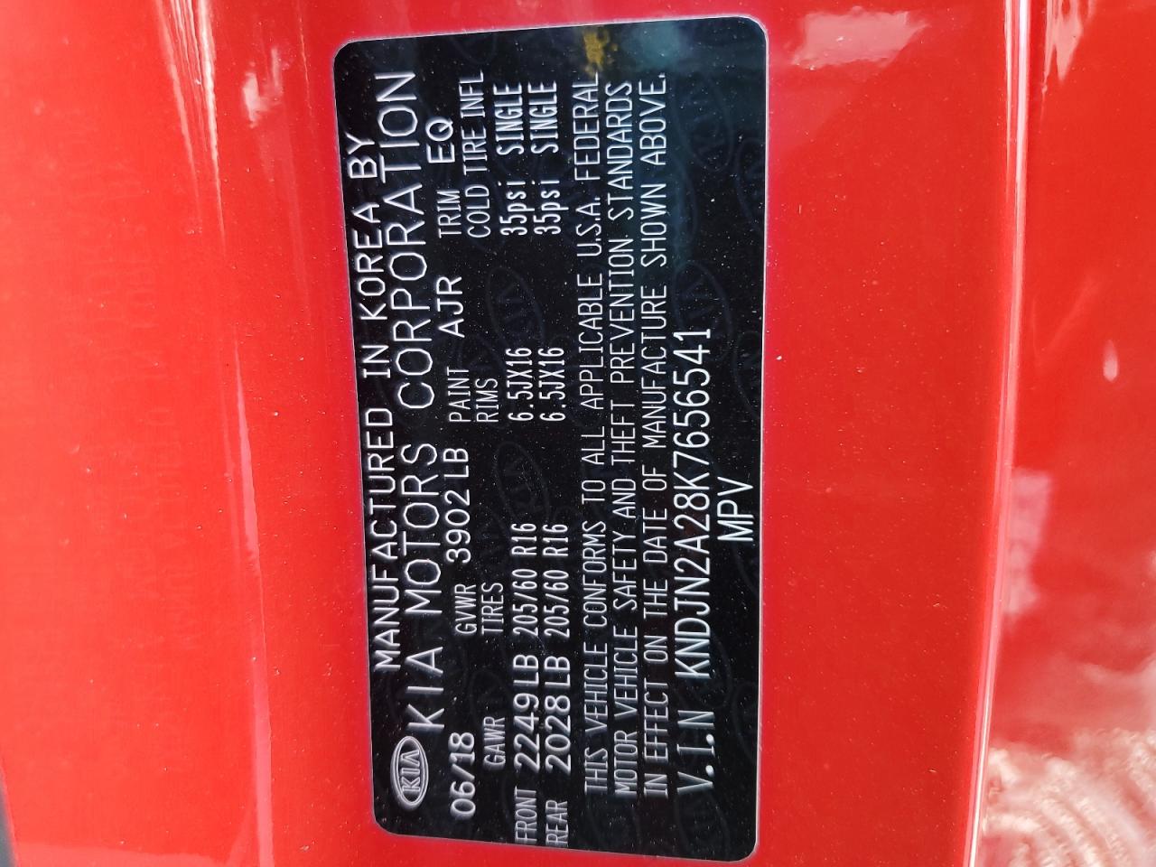 Колір ЧервонийЦиліндри 4VIN KNDJN2A28K7656541Стан Заводиться та їде (перевірено)Ушкодження Передня або задня