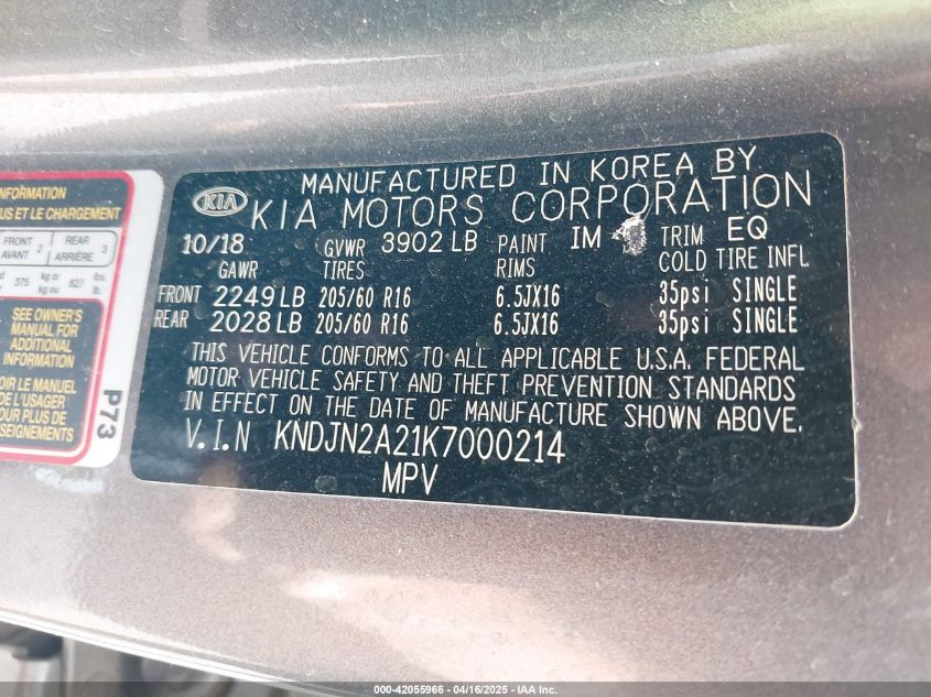 KIA SOUL 1.6 2019 р.в., Передній привід (KNDJN2A21K7000214) з США