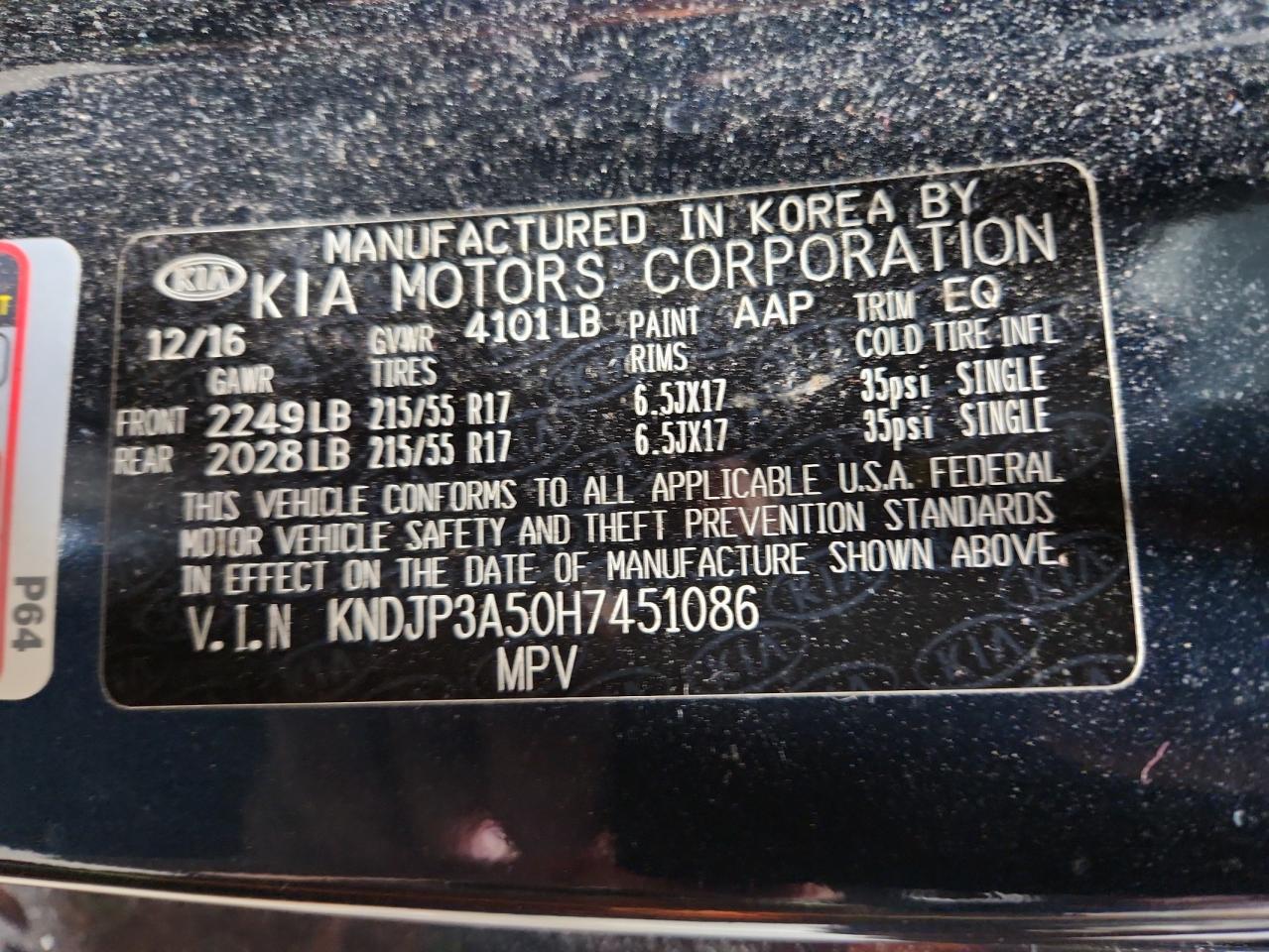 Колір СинійЦиліндри 4VIN KNDJP3A50H7451086Стан Заводиться та їде (перевірено)Ушкодження Передня або задня