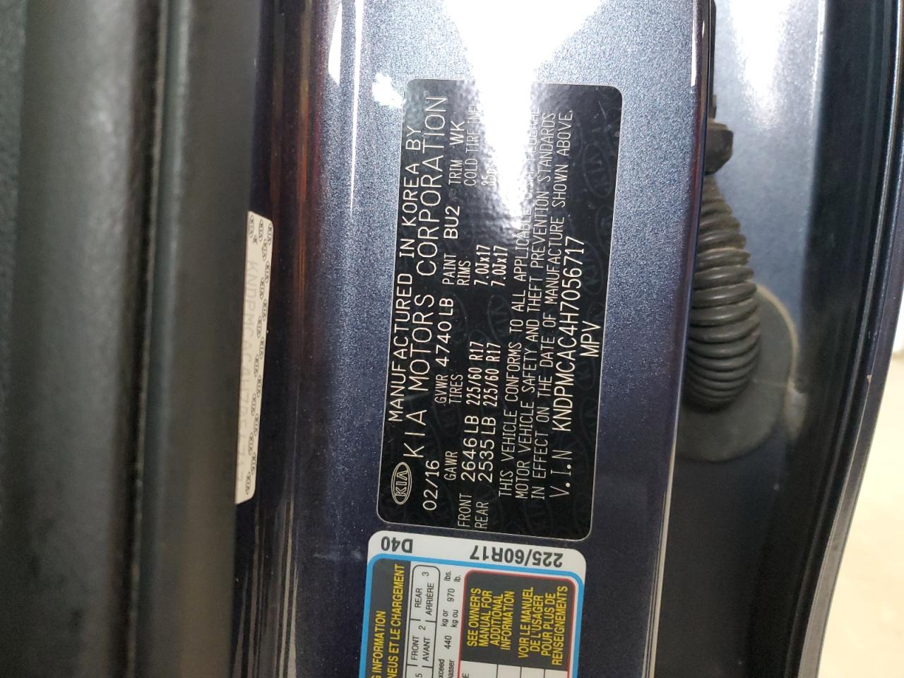 Колір СинійЦиліндри 4Привід Повний привідVIN KNDPMCAC4H7056717Стан НевідомоУшкодження Механічні пошкодження