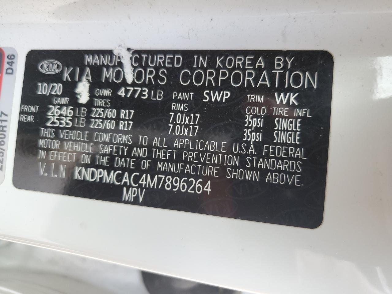 Колір БілийЦиліндри 4Привід Повний привідVIN KNDPMCAC4M7896264Стан Заводиться та їде (перевірено)Ушкодження Передня або задняДата аукціону 2025-11-06