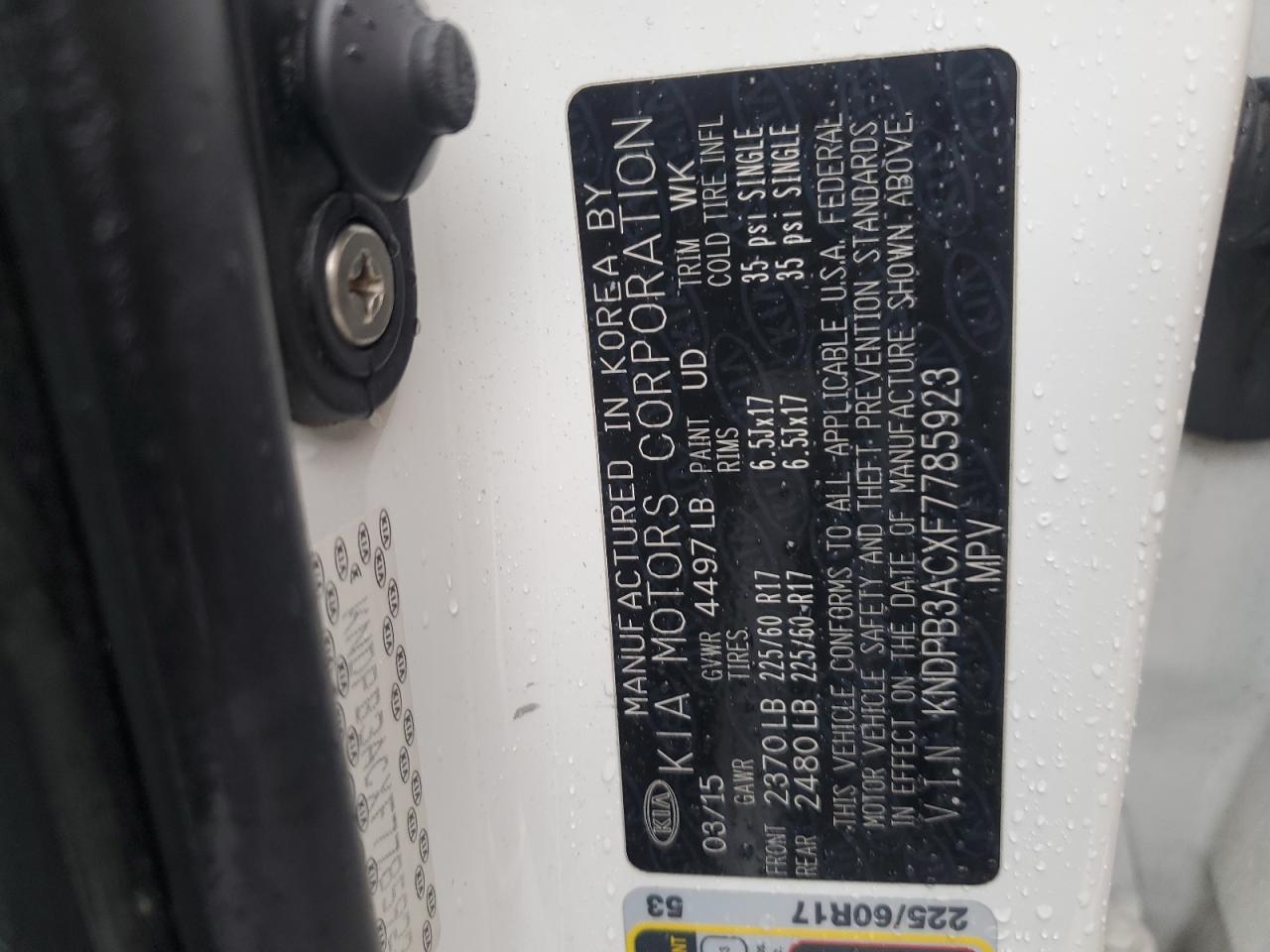 KIA SPORTAGE 2.4 2015 р.в., (KNDPB3ACXF7785923) з США