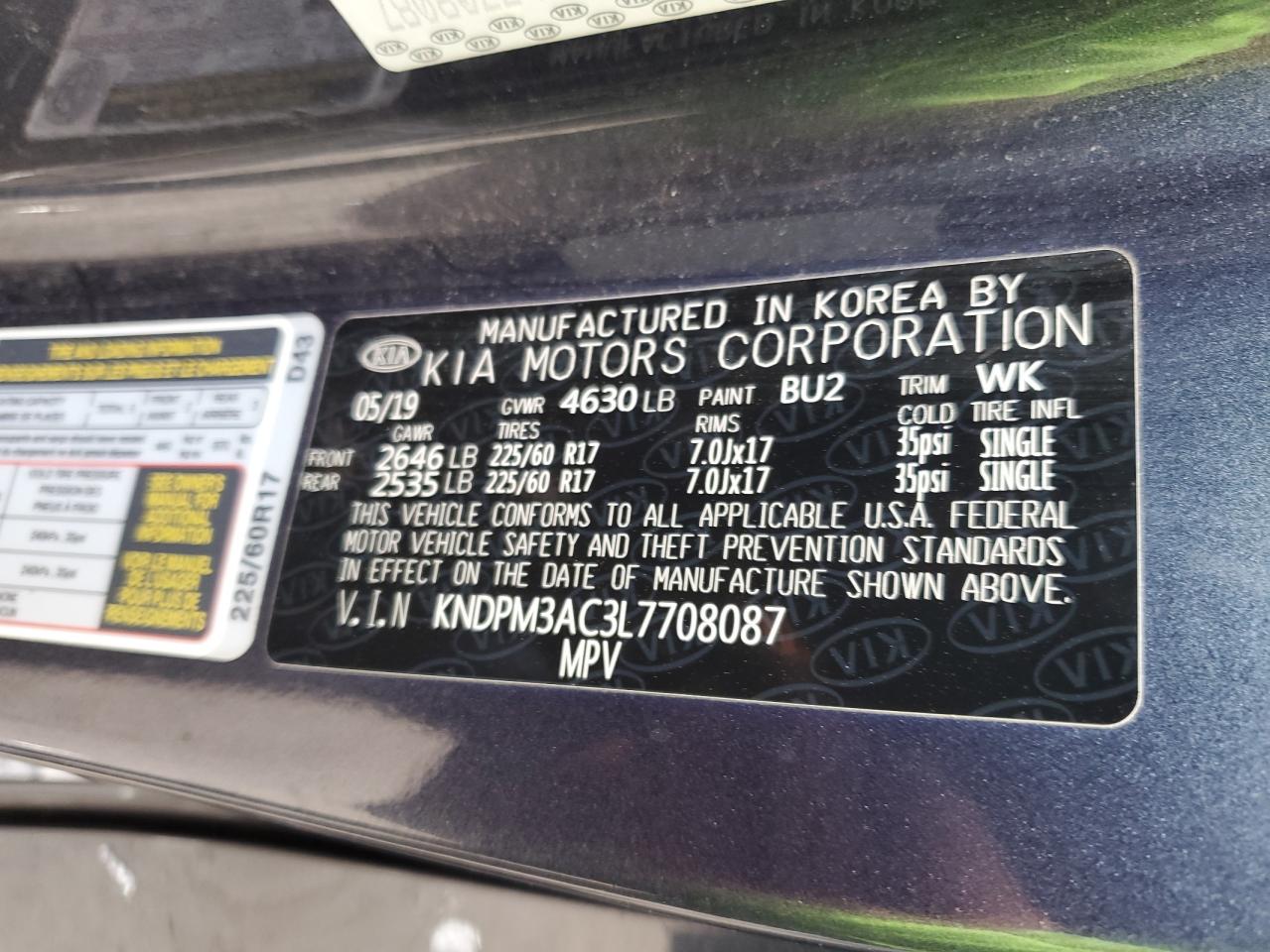 Колір СинійЦиліндри 4VIN KNDPM3AC3L7708087Стан Заводиться та їде (перевірено)Ушкодження З боківДата аукціону 2025-11-07