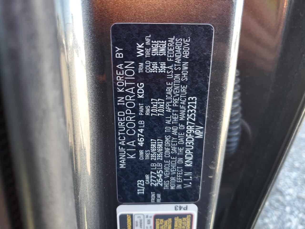 Колір СірийЦиліндри 4VIN KNDPU3DF9R7253213Стан НевідомоУшкодження Передня або задняДата аукціону 2025-11-03