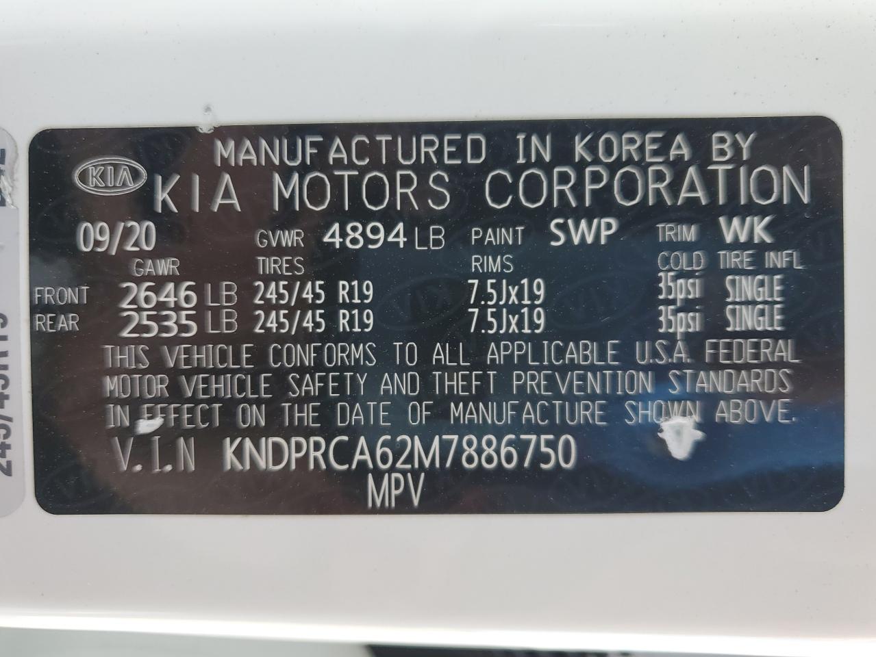 KIA SPORTAGE 2.0 2021 р.в., Повний привід (KNDPRCA62M7886750) з США