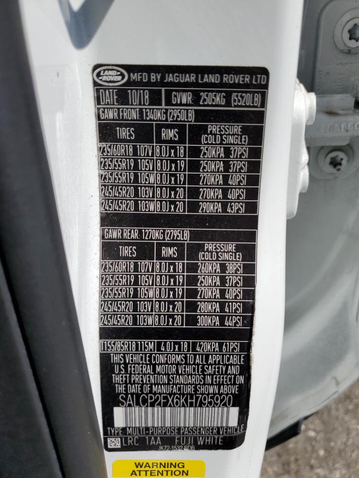 LAND ROVER DISCOVERY 2.0 2019 р.в., Повний привід (SALCP2FX6KH795920) з США