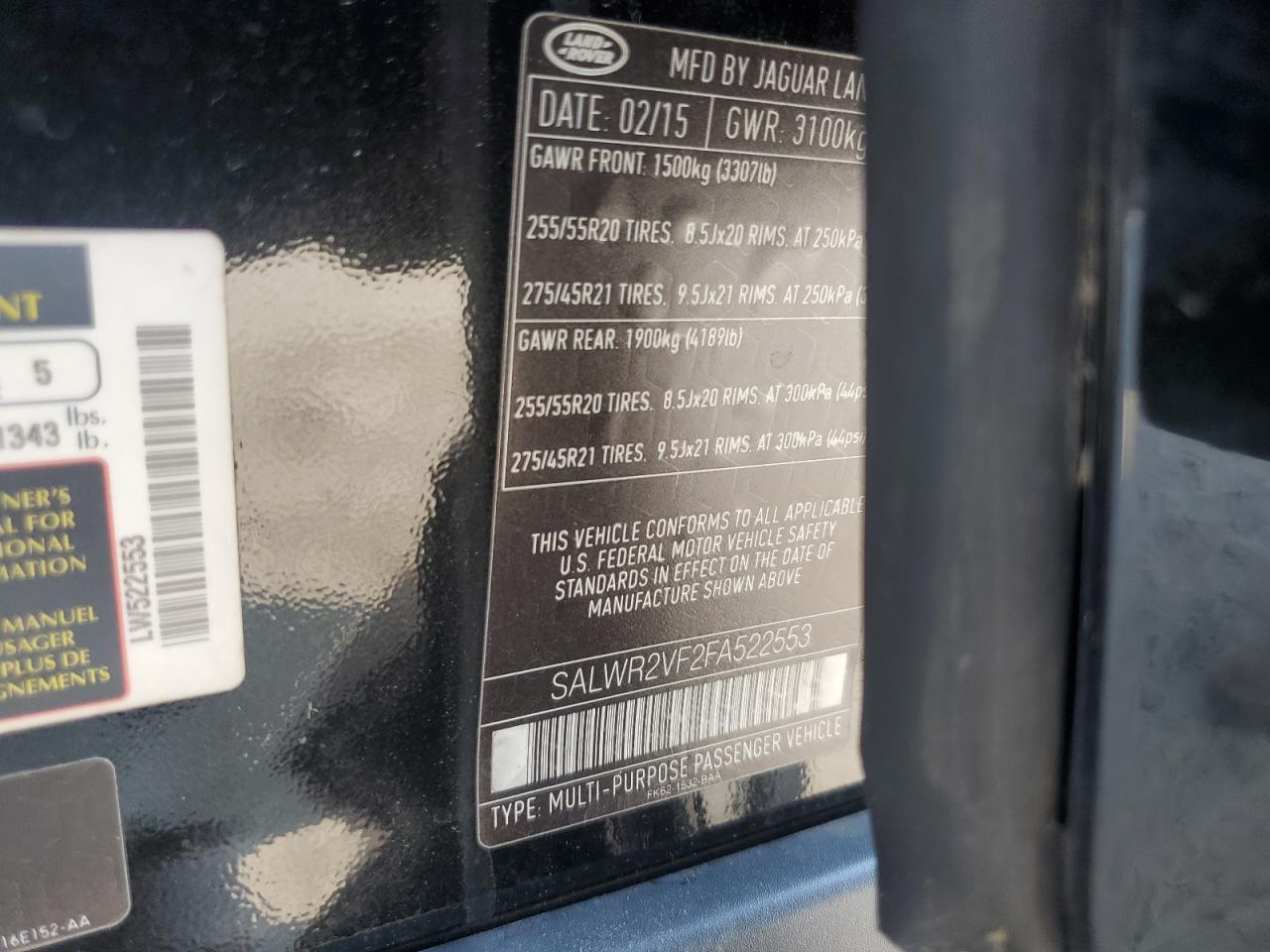 2015 LAND ROVER RANGE ROVER SVR
