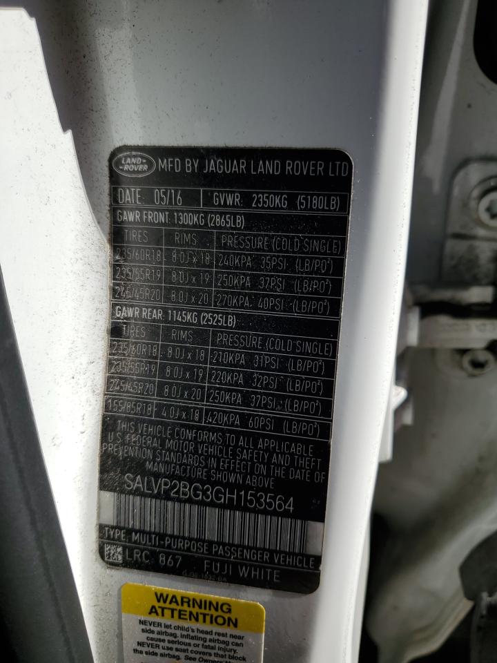 LAND ROVER RANGE ROVER 2.0 2016 р.в., Повний привід (SALVP2BG3GH153564) з США