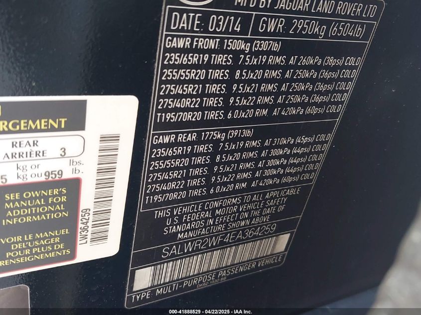 LAND ROVER RANGE ROVER SPORT 3.0 2014 р.в., Повний привід (SALWR2WF4EA364259) з США