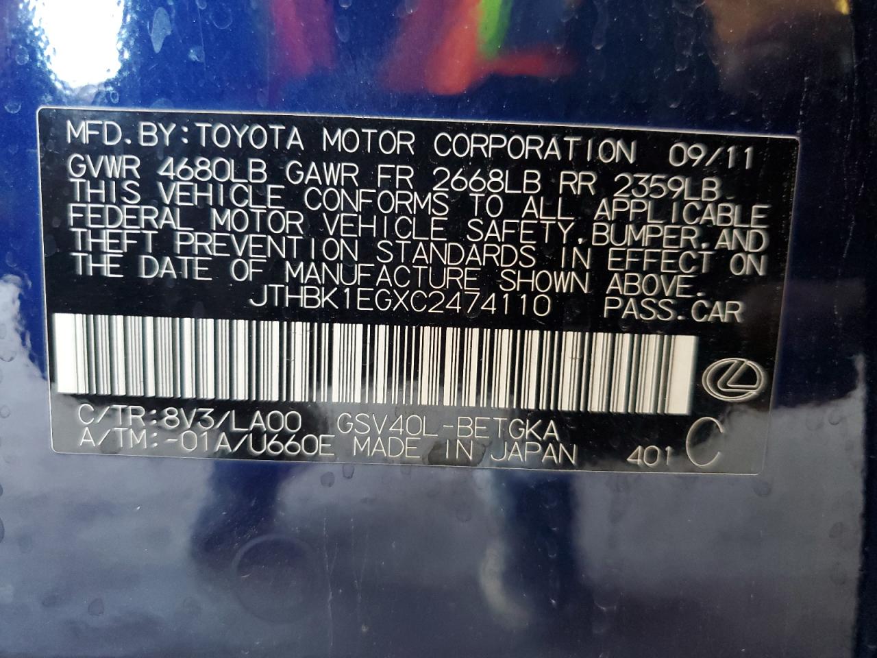 LEXUS ES 350 3.5 2012 р.в., (JTHBK1EGXC2474110) з США