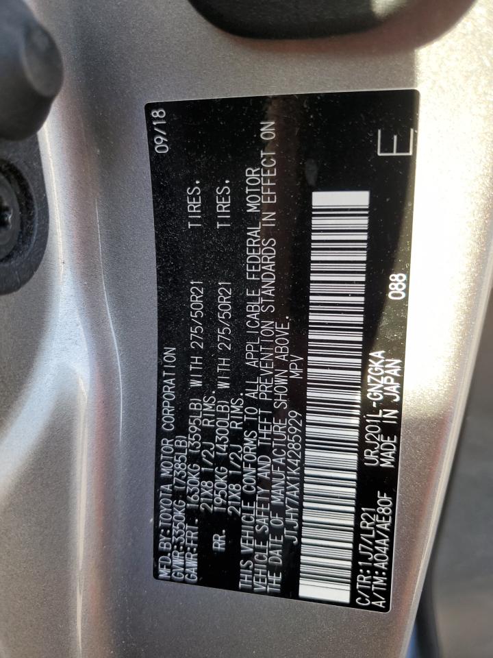 Колір СрібнийЦиліндри 8Привід Повний привідVIN JTJHY7AX1K4285929Стан ЗаводитьсяУшкодження З боків