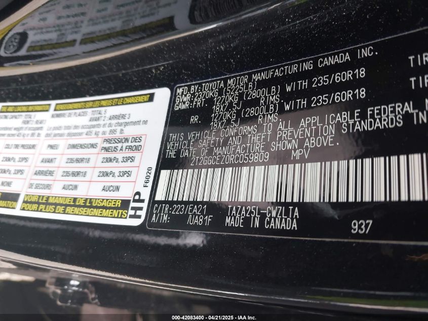 Колір ЧорнийЦиліндри 4Привід Повний привідVIN 2T2GGCEZ0RC059809Стан СтаціонарноУшкодження Передня і задня