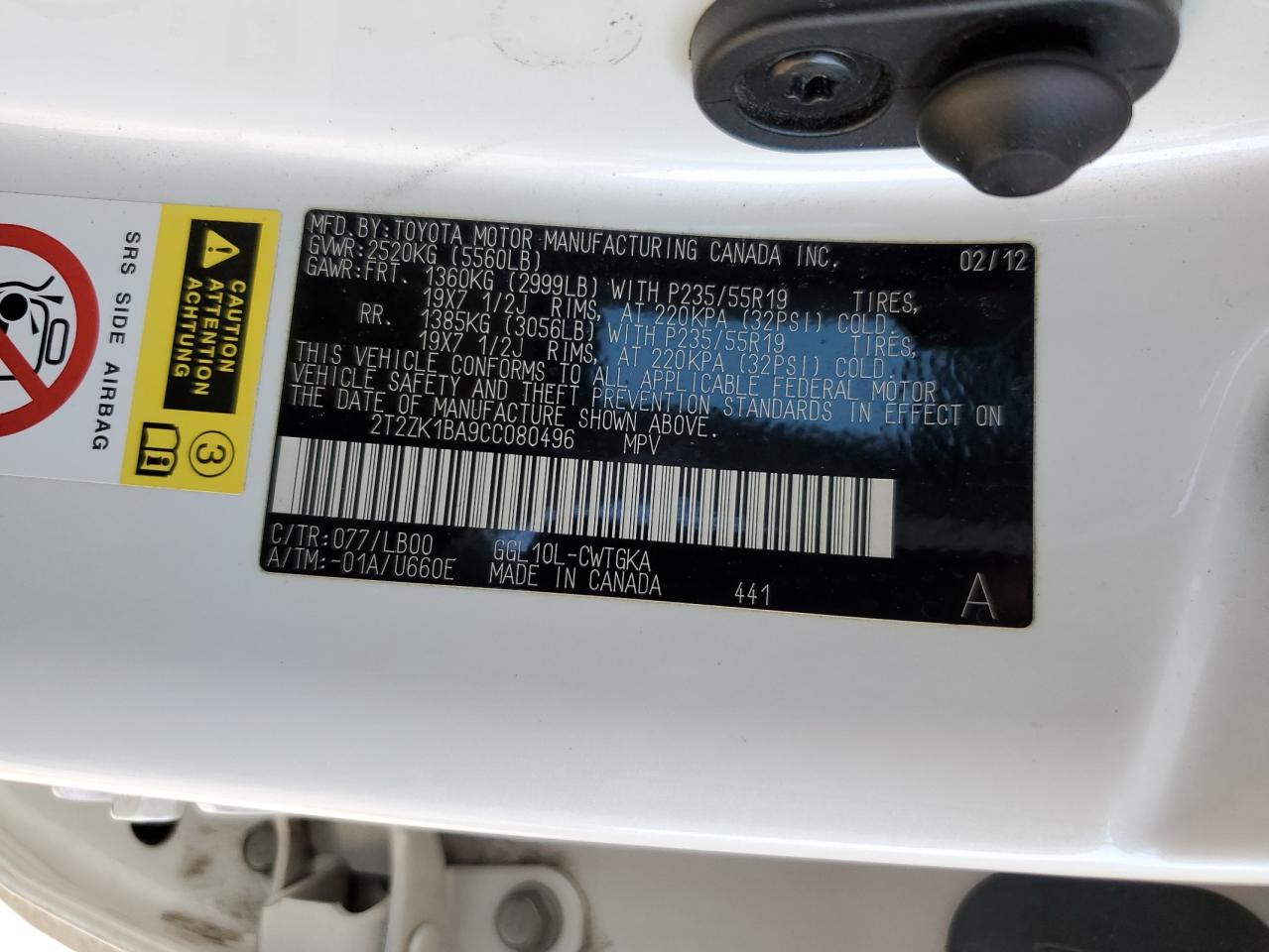 Колір БілийЦиліндри 6VIN 2T2ZK1BA9CC080496Стан ЗаводитьсяУшкодження ЗадняДата аукціону 2025-11-03