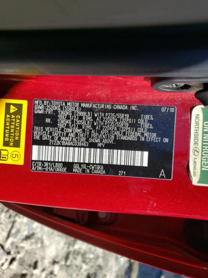 LEXUS RX 350 3.5 2010 р.в., (2T2ZK1BA8AC038463) з США