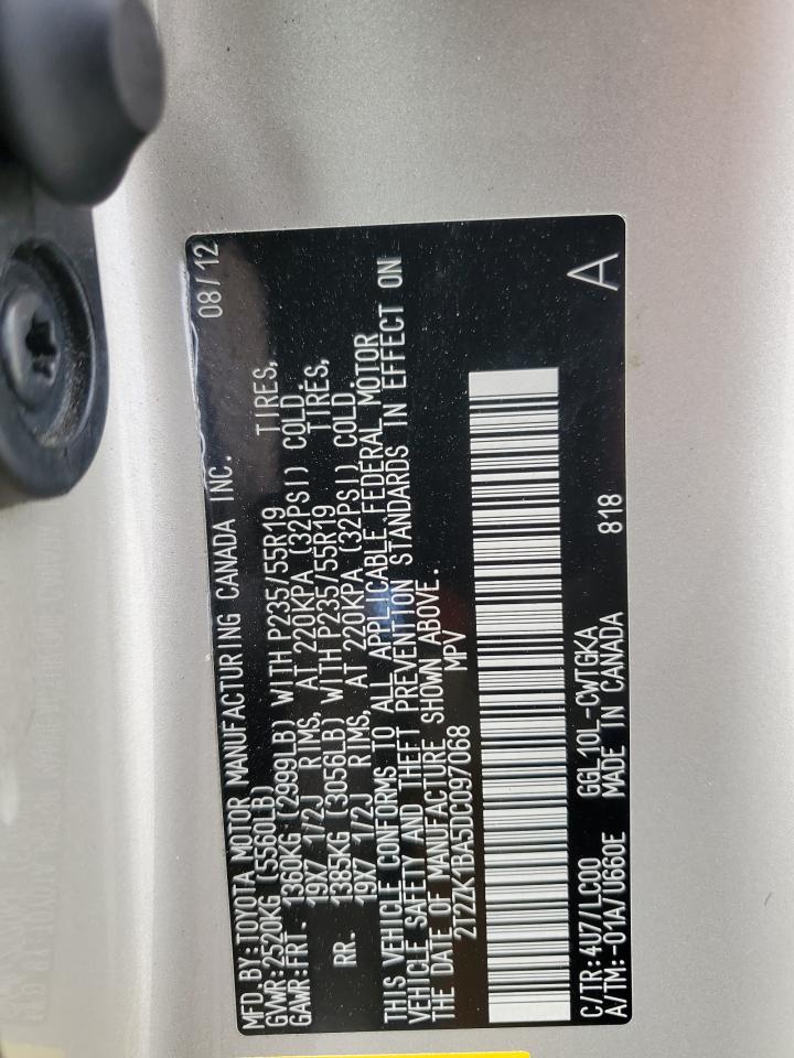 Колір ЗагарЦиліндри 6VIN 2T2ZK1BA5DC097068Стан Заводиться та їде (перевірено)Ушкодження Передня або задняДата аукціону 2025-11-05