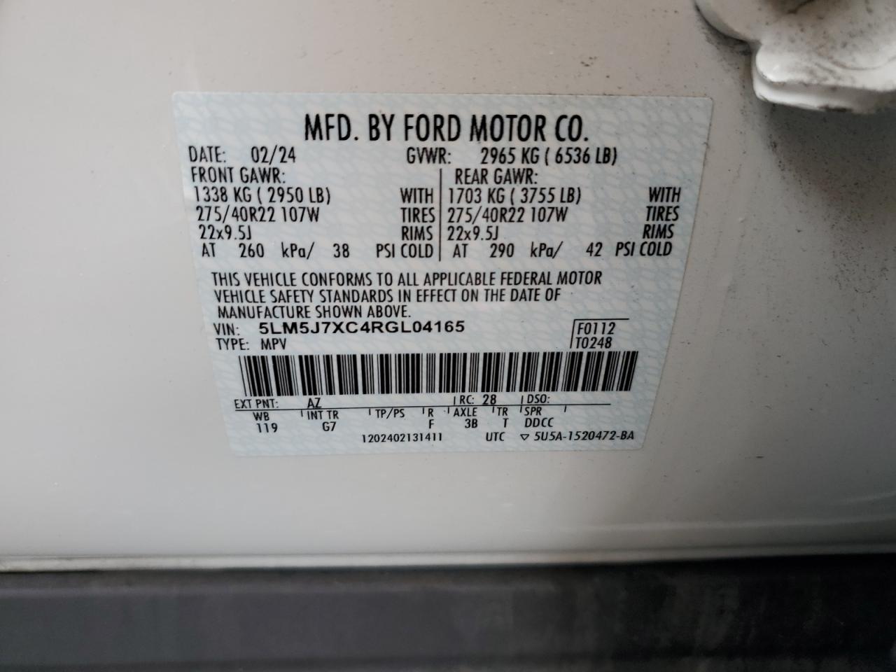 LINCOLN AVIATOR 3.0 2024 р.в., Повний привід (5LM5J7XC4RGL04165) з США